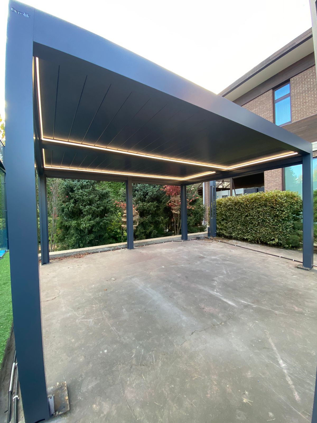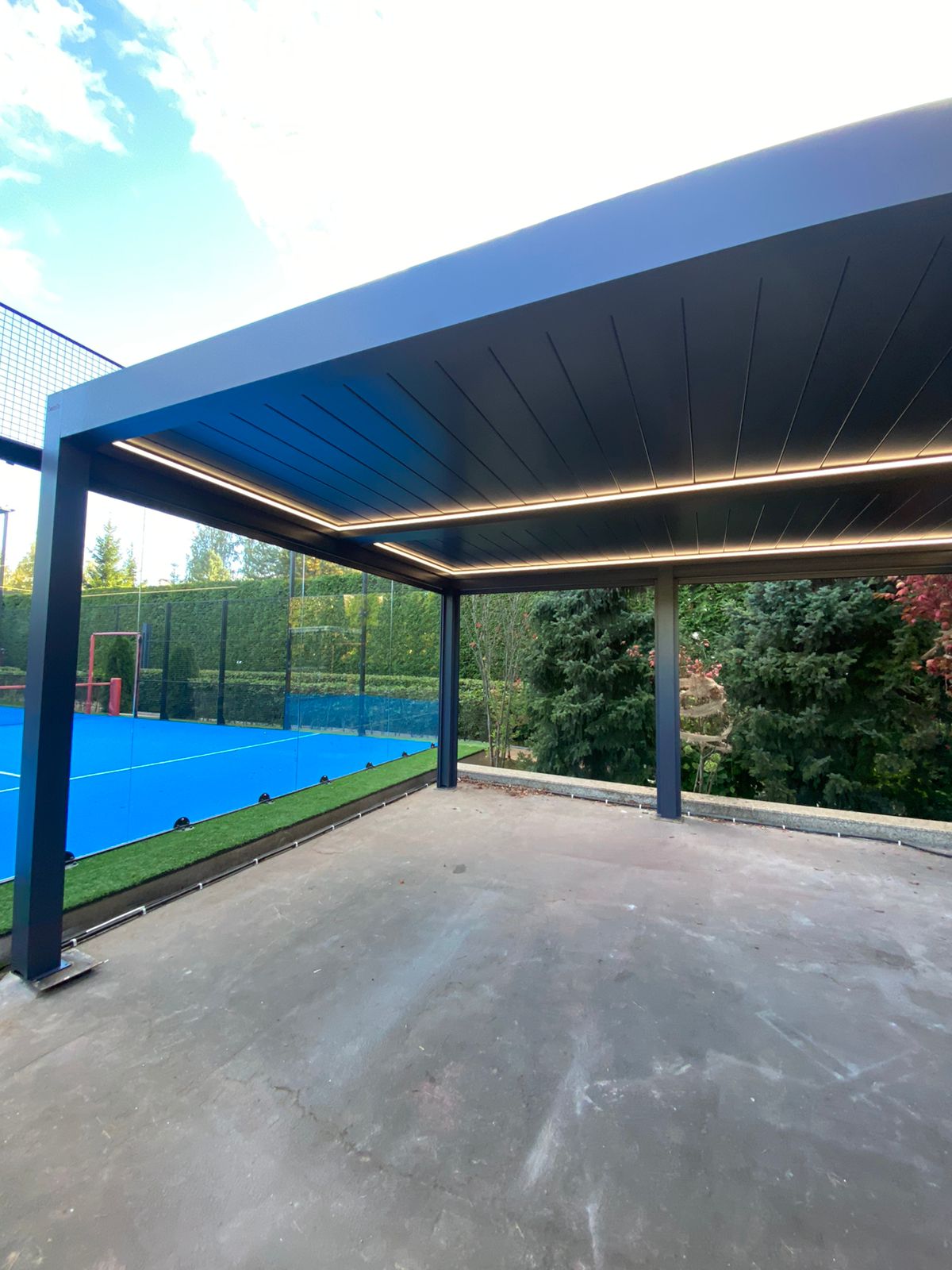 Биоклиматическая пергола с поворотной крышей и zip-системой