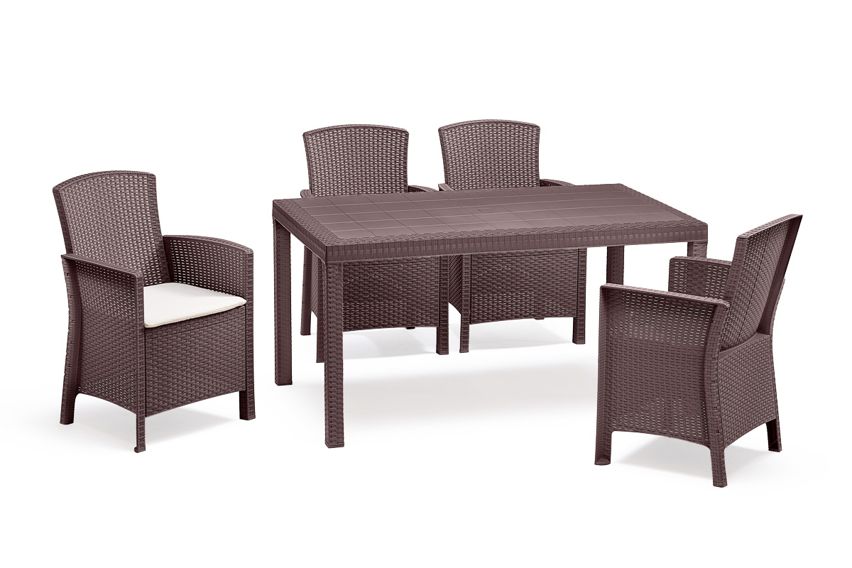 Комфортное уличное кресло с высокой прямоугольной спинкой и подлокотниками, будет отлично смотреться во всех открытых пространствах: