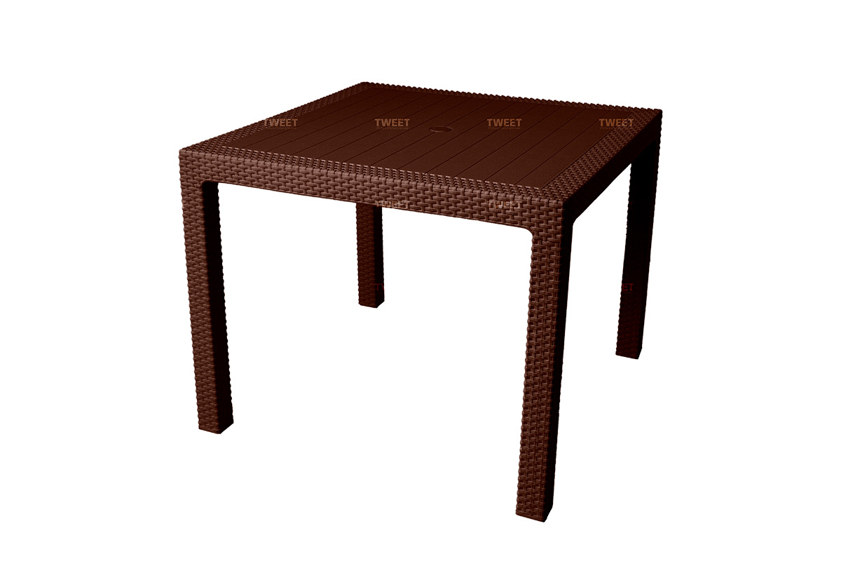 Пластиковый обеденный стол TWEET Quatro от российского производителя Gardeck на 4 персоны порадует любителей плетеной мебели своей фактурой в стиле ротанг.