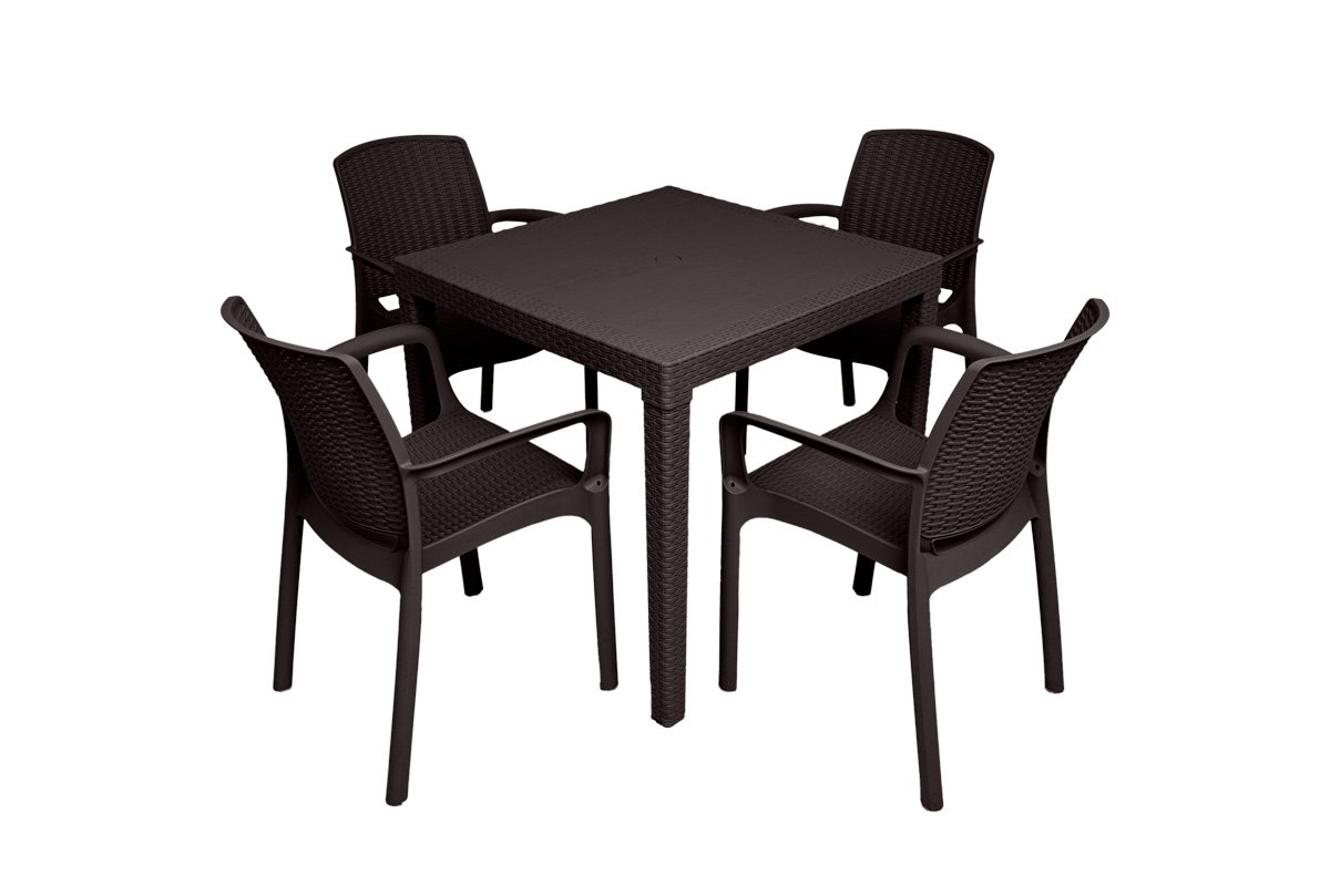 Cтол Fiji Quatro Table бюджетный вариант для благоустройства дачи, кафе или балкона на 4-х человек выполнен в стиле ротанг.