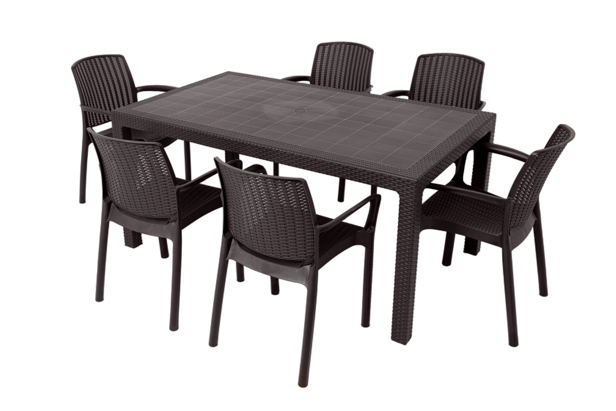 Cтол Fiji Table бюджетный вариант для благоустройства дачи, кафе или балкона на 6-х человек выполнен в стиле ротанг.