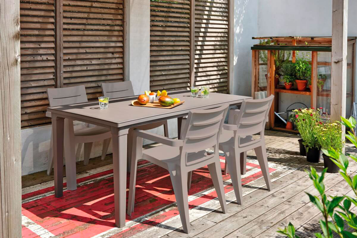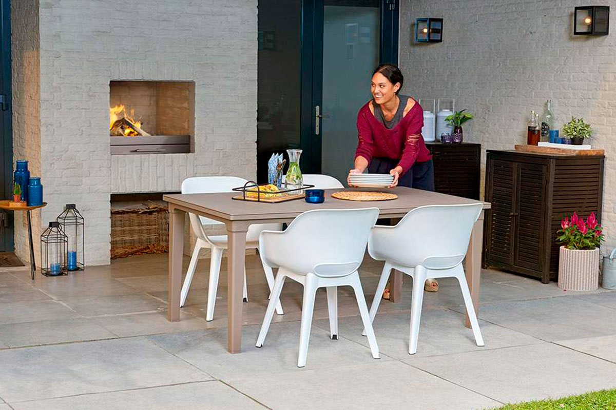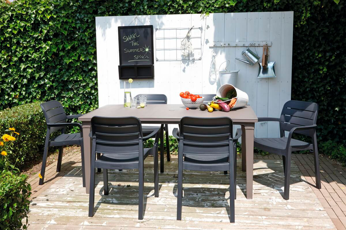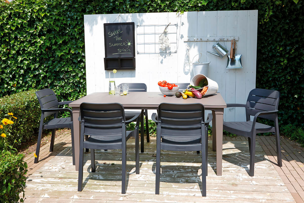 Можно укомплектовать наборами, например, купить комплект кресел Montana или набор стульев Bali от компании Keter, а к ним добавить 2-х или 3-х местные диваны Corfu Love Seat.