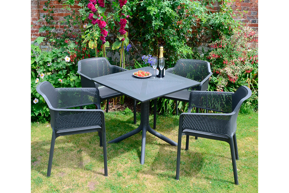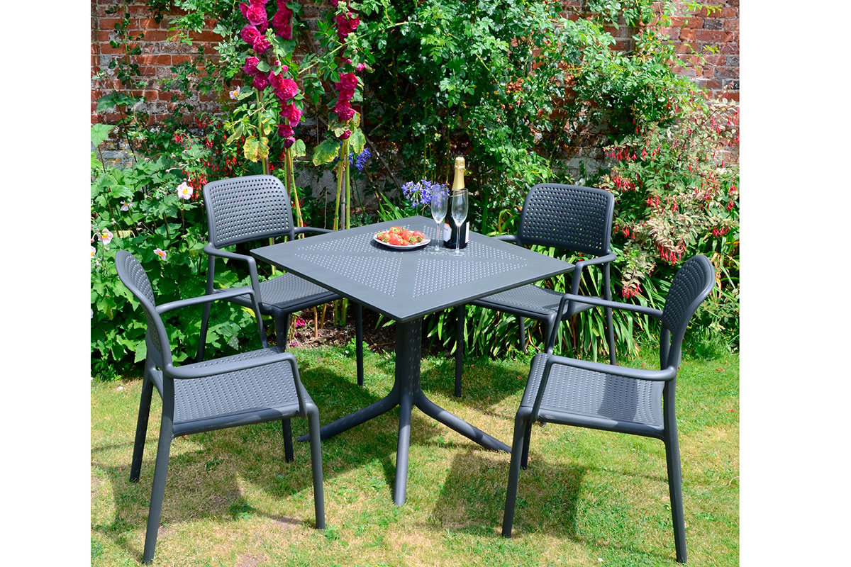 Для получения идеальной комплектации рекомендуем вам купить квадратный пластиковый стол Clip 80 от Nardiсо стульямиBora и Bora Bistrot иликреслами Acquamarina и Darsena из серии LEKKO от итальянских дизайнеров.