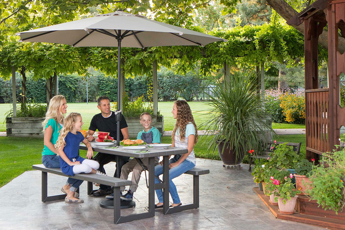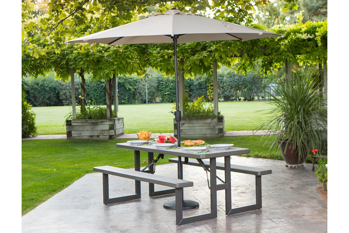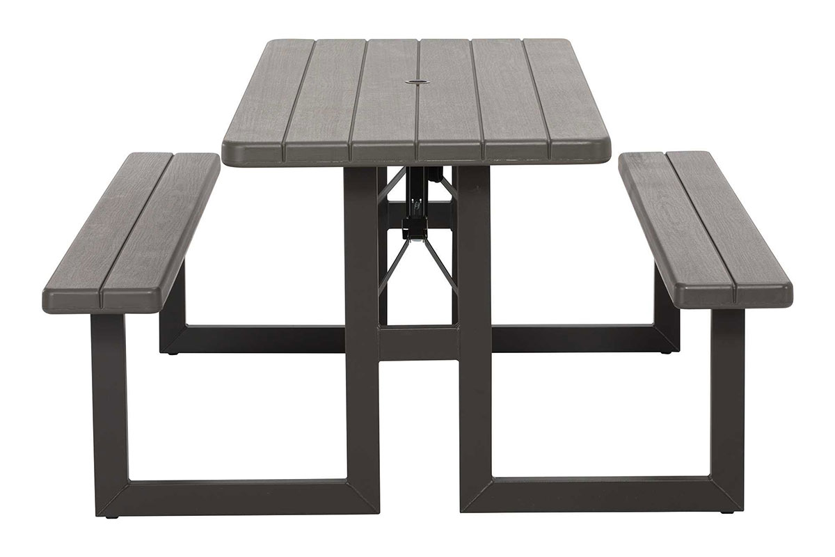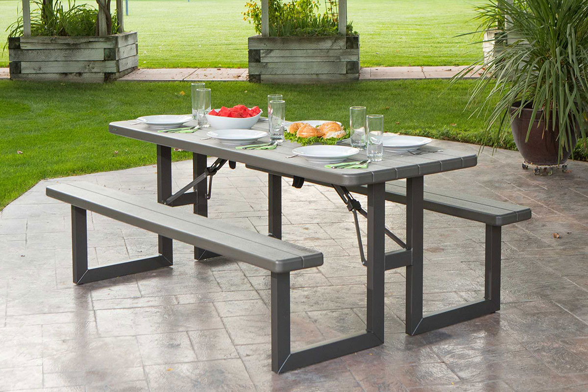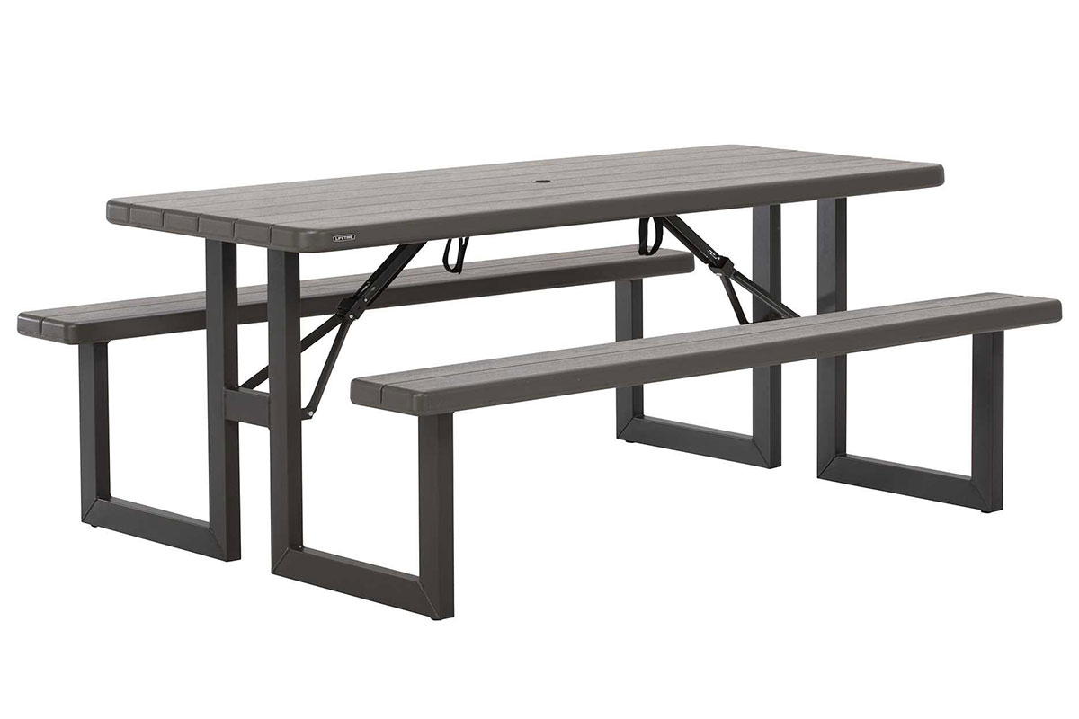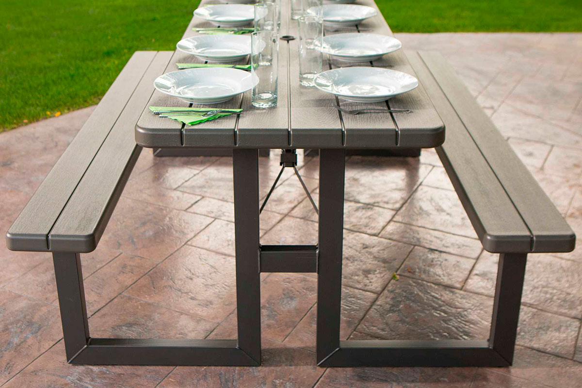 Комфортная мебель для обеда на свежем воздухе - стол с лавочками LIFETIME. Комбинированный комплект обеденной мебели украсит любой загородный участок или уличное кафе.