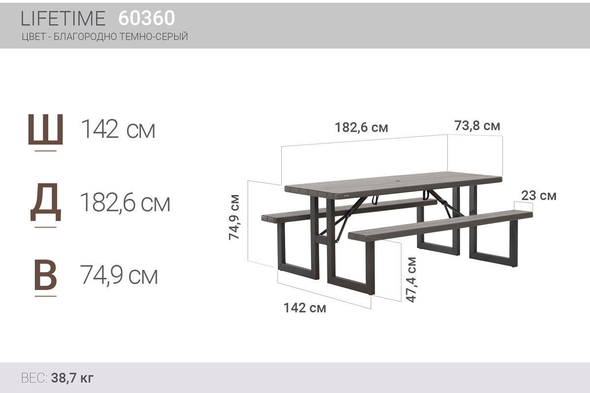 UnionWoodКаталогМебель для террасыСтол с лавочками Lifetime для пикника