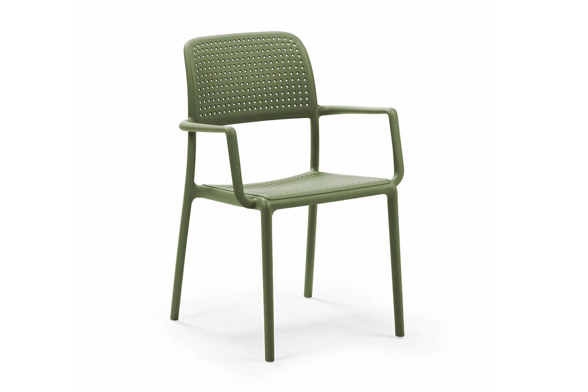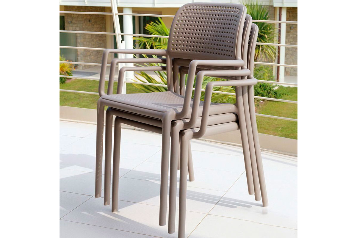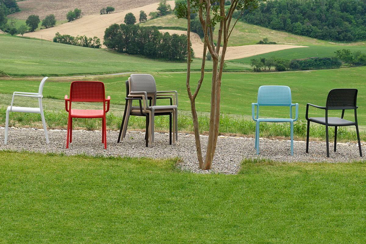 Уличные стулья Bora коллекции Lekko с подлокотниками от производителя Nardi- это стильный и элегантный стул от итальянских дизайнеров из стеклопластика, разработанный для коммерческого использования в помещении и на улице.