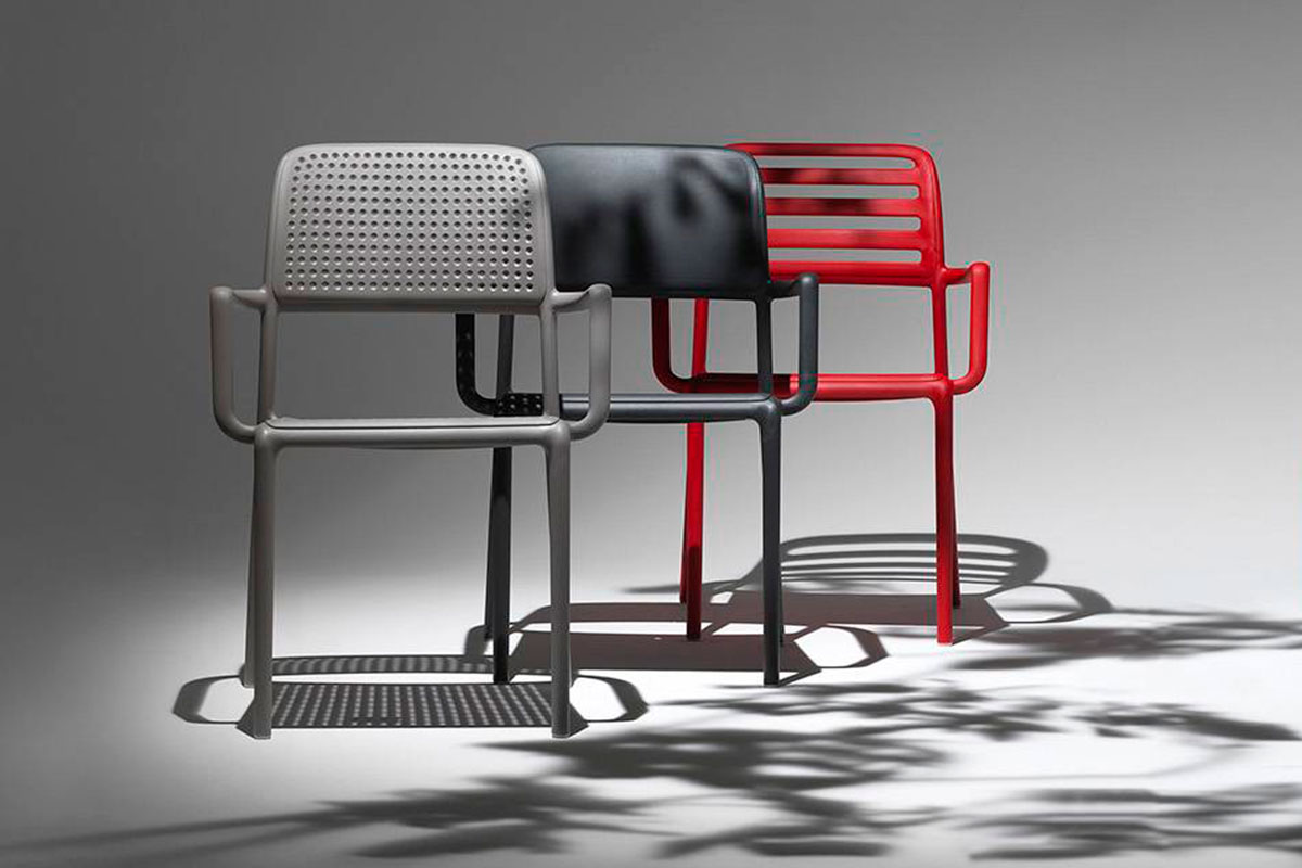 Уличные стулья Bora коллекции Lekko с подлокотниками от производителя Nardi- это стильный и элегантный стул от итальянских дизайнеров из стеклопластика, разработанный для коммерческого использования в помещении и на улице.