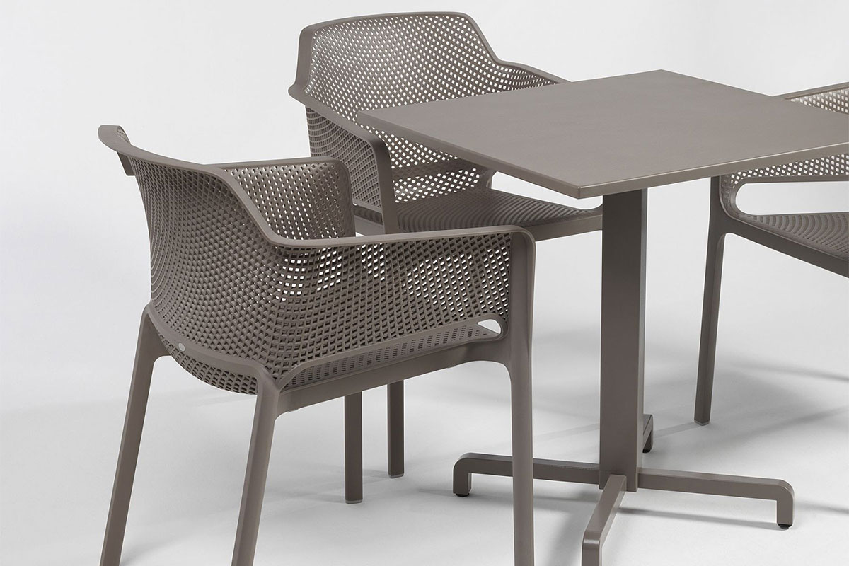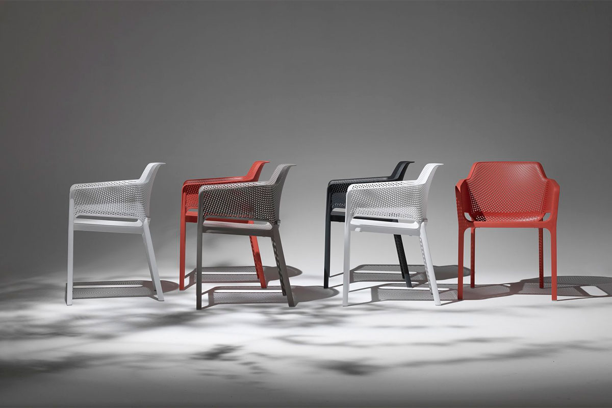 Цельнолитое кресло Netимеет эргономичную форму и прекрасно подойдет для организации обеденных зон на верандах летних кафе или патио.